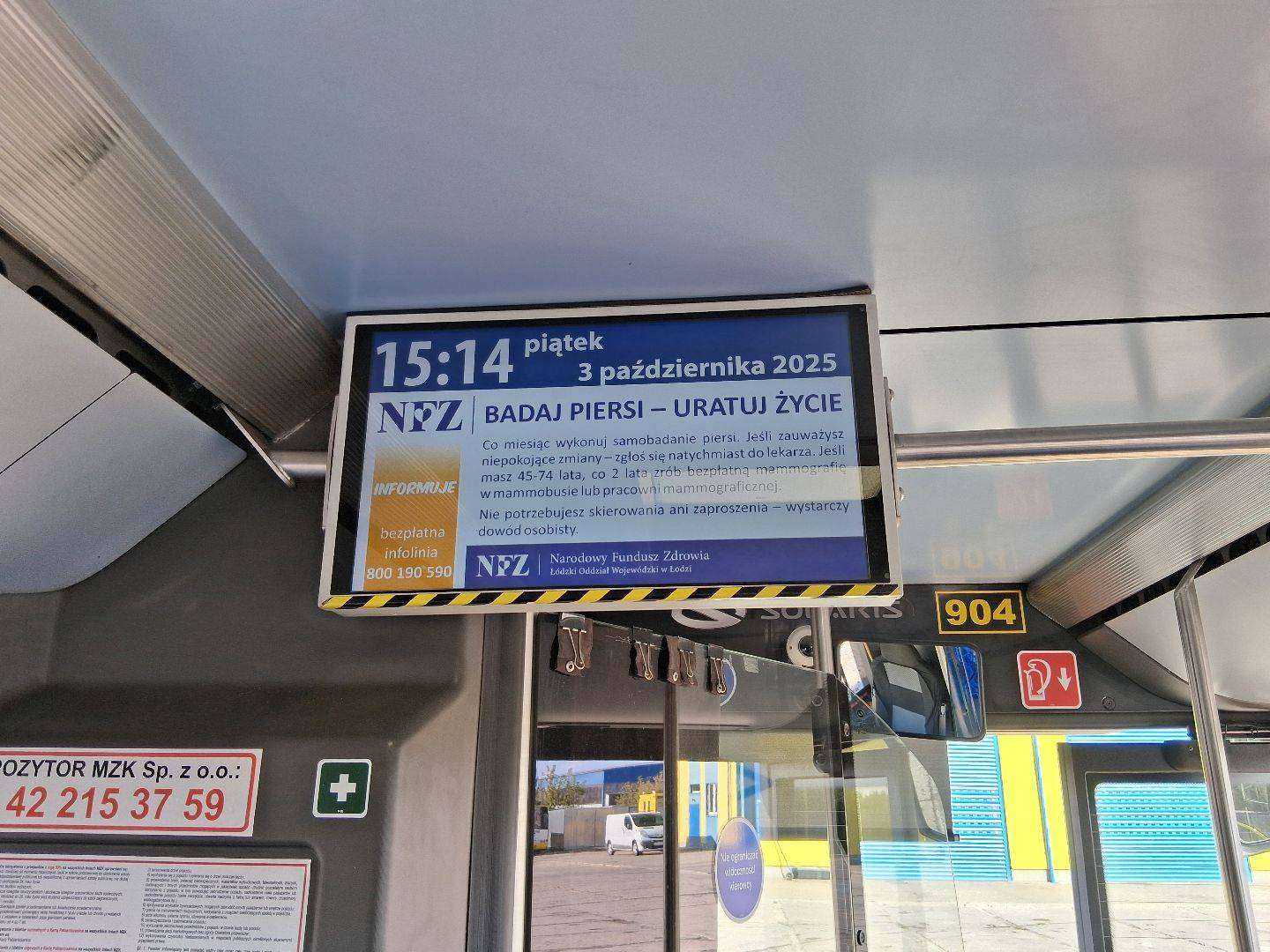 – Pabianicka komunikacja miejska dociera codziennie do tysięcy mieszkańców — to skuteczny sposób, by promować profilaktykę zdrowotną, która ratuje zdrowie i życie. W ramach współpracy z NFZ wyświetlamy w autobusach MZK Pabianice praktyczne informacje o zdrowiu, m.in. o ofercie bezpłatnych badań profilaktycznych. To dla nas wyraz odpowiedzialności jako operatora publicznego — chcemy ułatwiać dostęp do ważnych i wiarygodnych informacji zdrowotnych – mówi Marcin Chmielewski, prezes zarządu Miejskiego Zakładu Komunikacyjnego w Pabianicach.