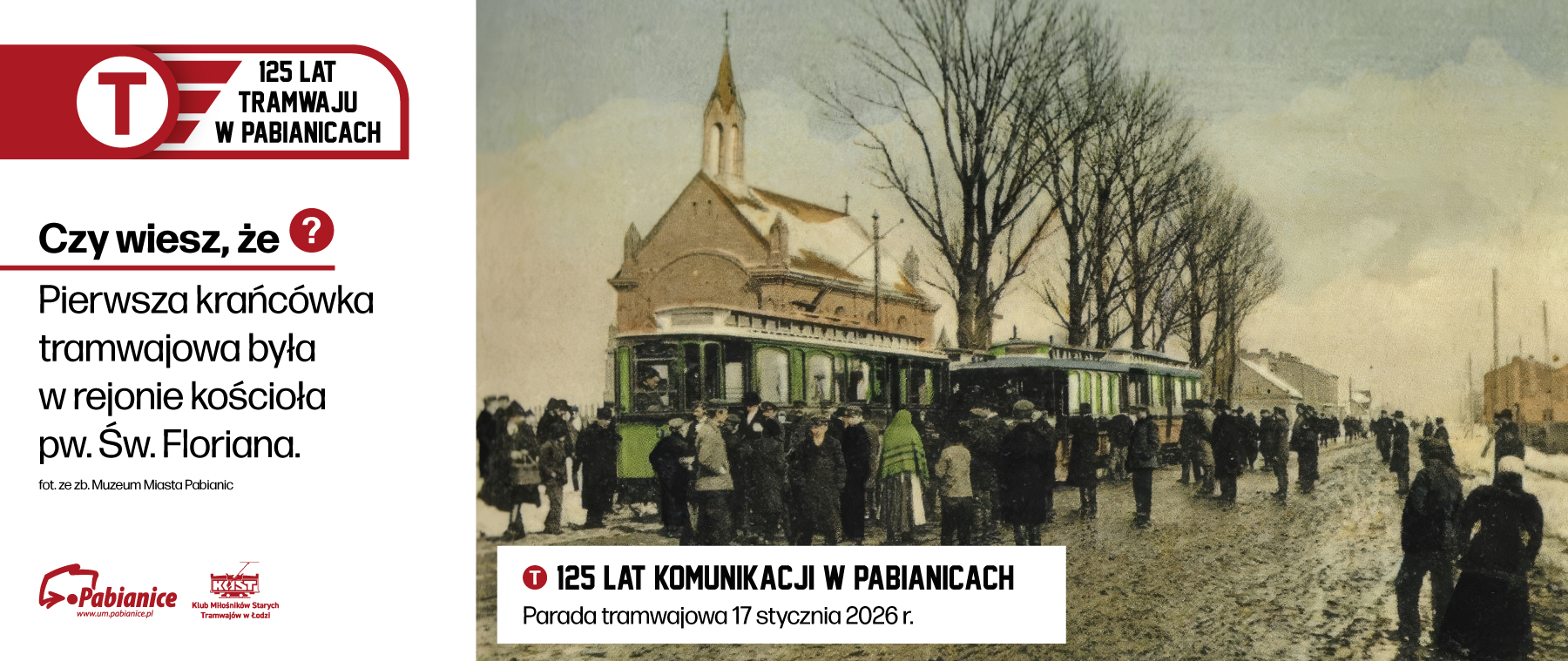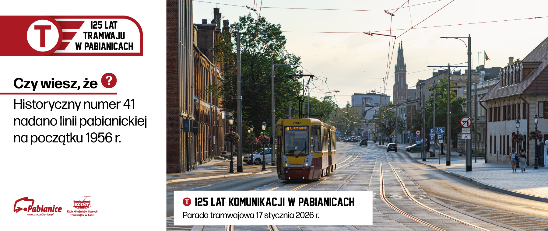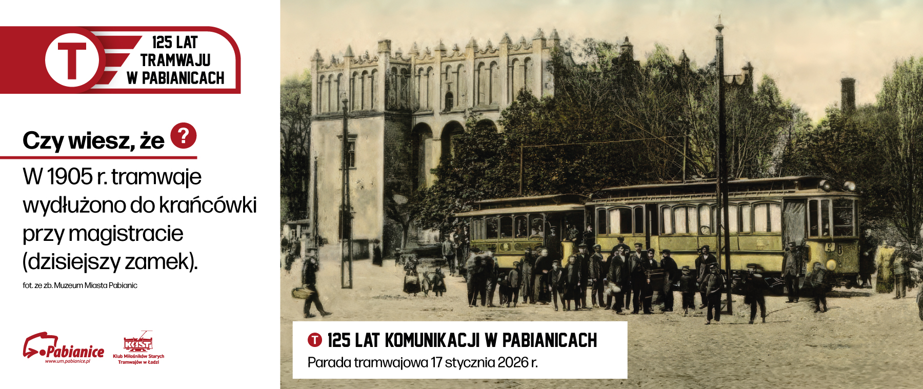 Miasto Pabianice wspólnie z Klubem Miłośników Starych Tramwajów w Łodzi zapraszają na jubileusz 125-lecia linii tramwajowej – w sobotę 17 stycznia 2026 r. o godz. 12:00 przy zamku.