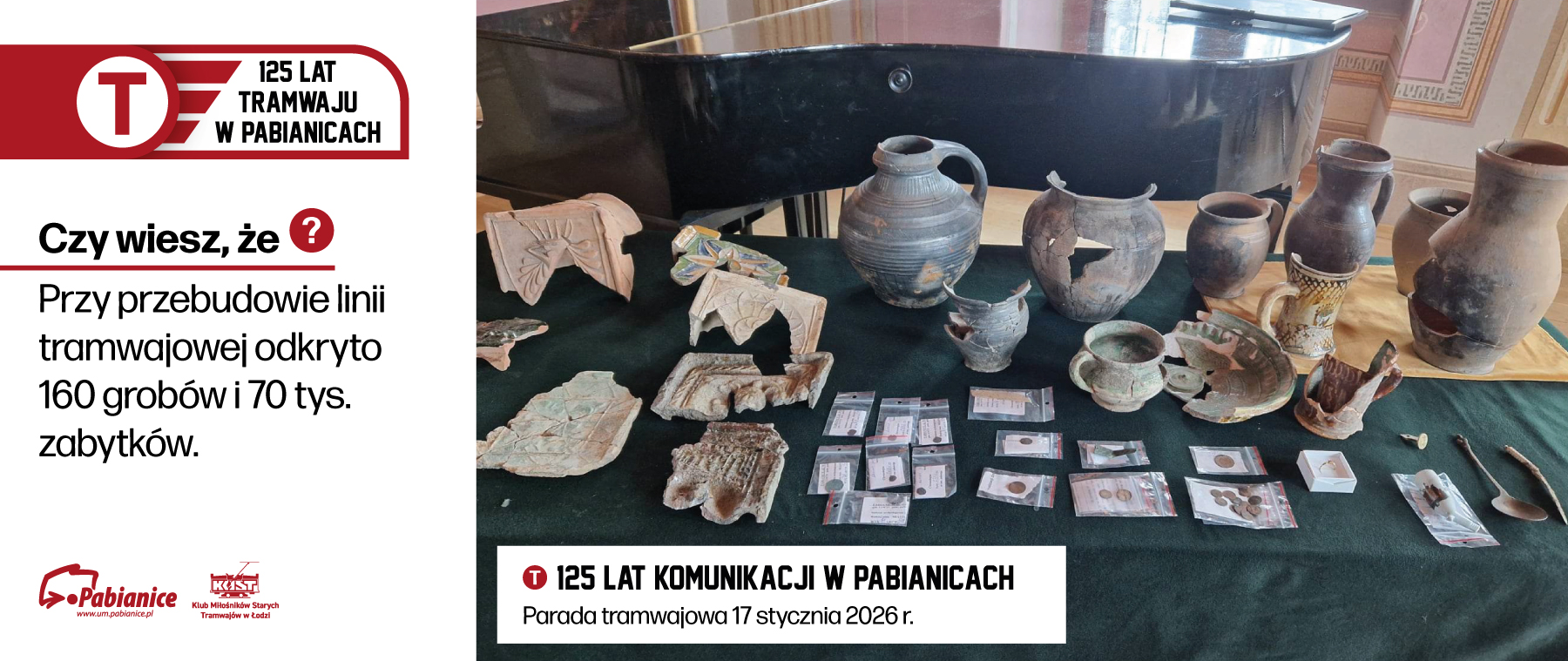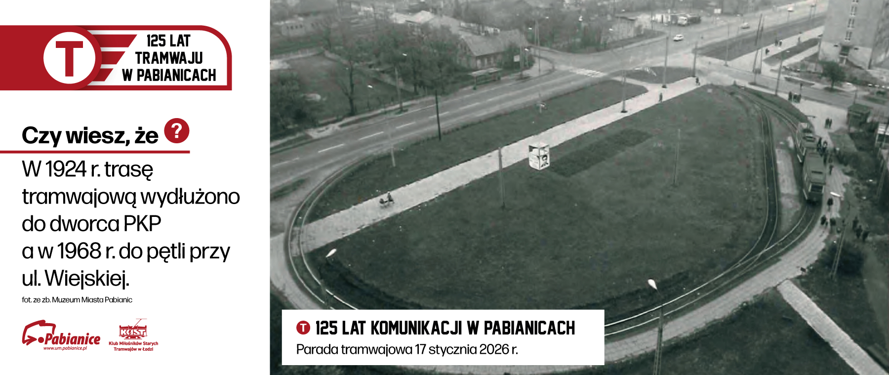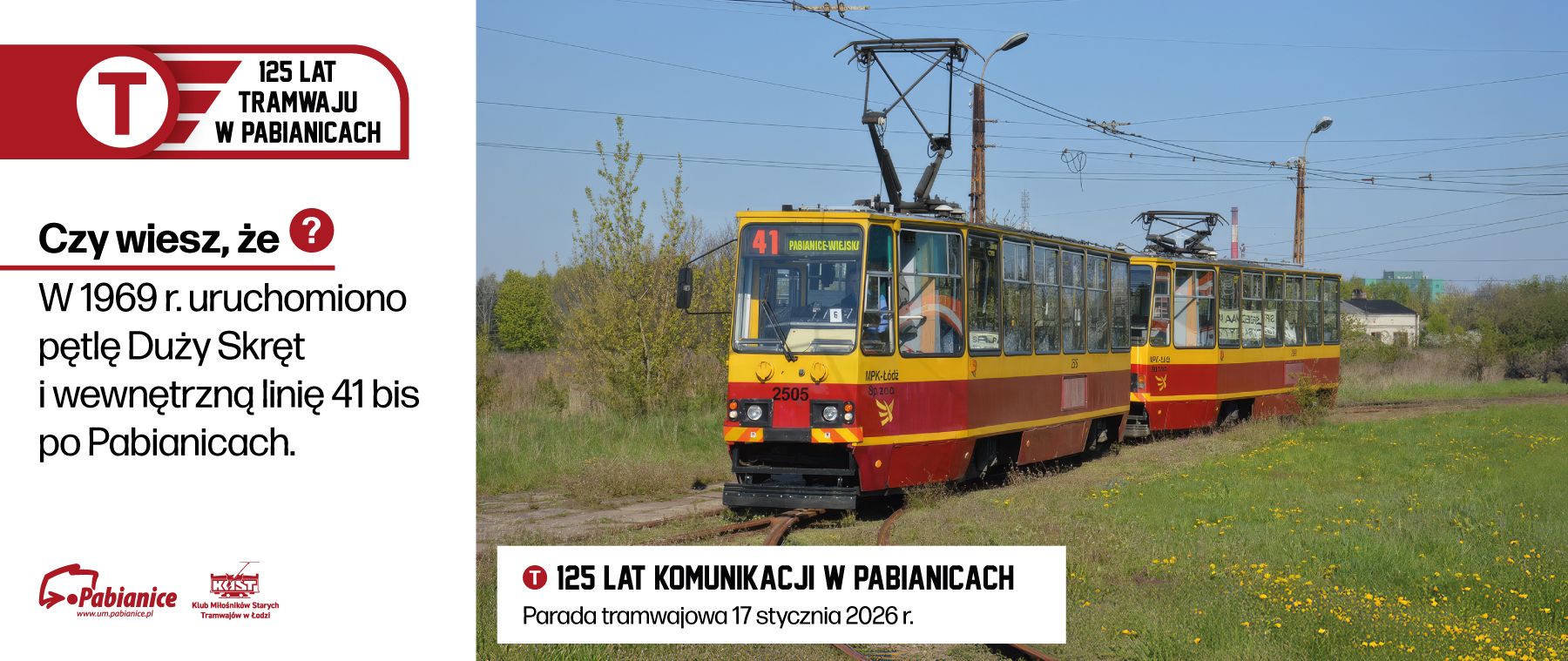 Miasto Pabianice wspólnie z Klubem Miłośników Starych Tramwajów w Łodzi zapraszają na jubileusz 125-lecia linii tramwajowej – w sobotę 17 stycznia 2026 r. o godz. 12:00 przy zamku.